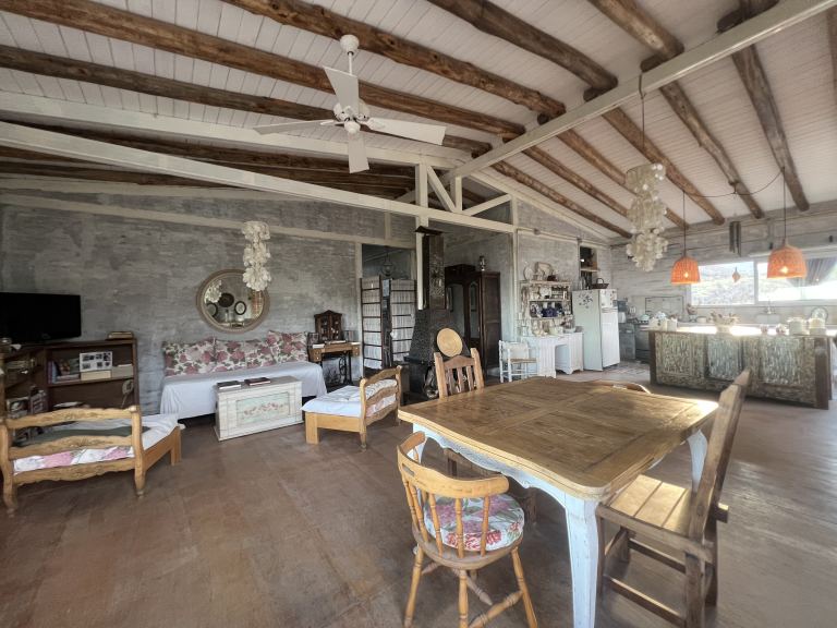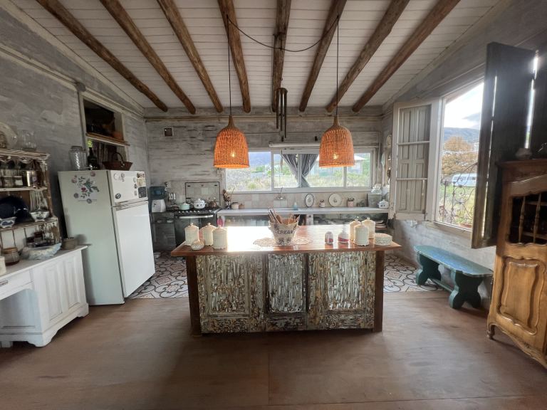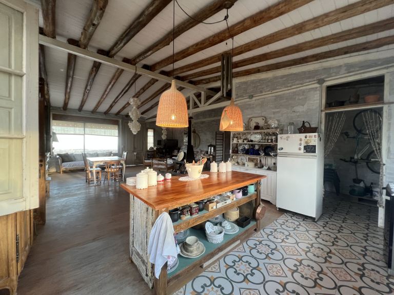 Esta hermosa y amplia propiedades, posee dos dormitorios con placares grandes, ideales para almacenamiento. Además, cuenta con dos baños, uno completo con antebaño y otro más pequeño fuera de la casa. La cocina está equipada con una hermosa isla que se integra al estar o living comedor, creando un espacio acogedor y funcional.