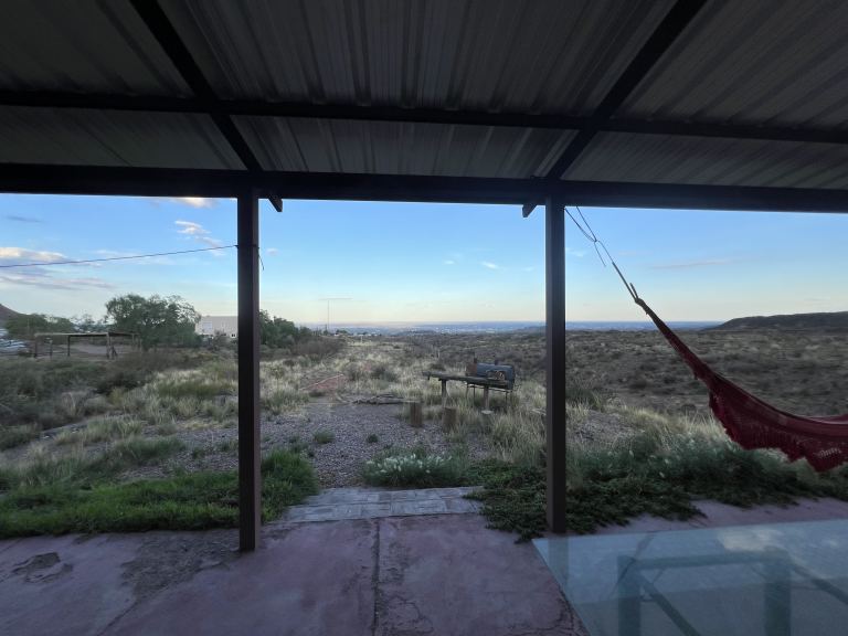 Disfruta de momentos al aire libre en la linda galería con vista al este, desde donde podrás apreciar la ciudad de Mendoza. También podrás disfrutar de una vista privilegiada al oeste, con panorámicas a la montaña, senderos y el río seco, así como a la estancia "San Isidro" y el Puesto del Indio Lodge.